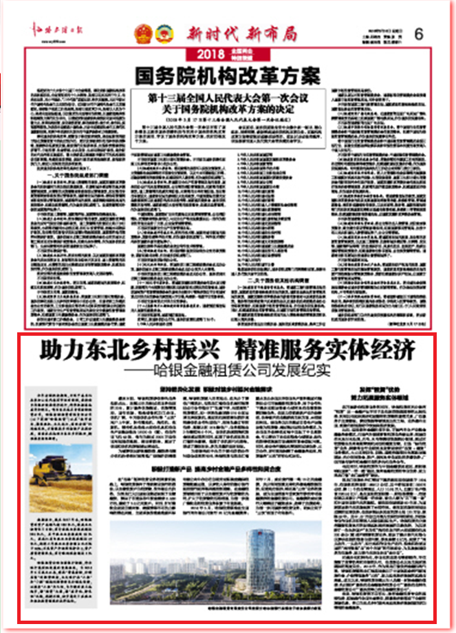 【哈爾濱日報】助力東北鄉(xiāng)村振興 精準服務(wù)實體經(jīng)濟 ——哈銀金融租賃公司發(fā)展紀實
