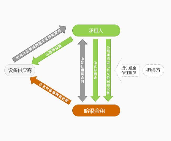 哈銀金租根據(jù)承租人對(duì)租賃物和供貨人的選擇或認(rèn)可,向供貨人購(gòu)買選定設(shè)備,提供給承租人使用,承租人根據(jù)雙方約定的利率、期限,按期足額支付租金的業(yè)務(wù)形式。租賃期滿,設(shè)備歸承租人所有。